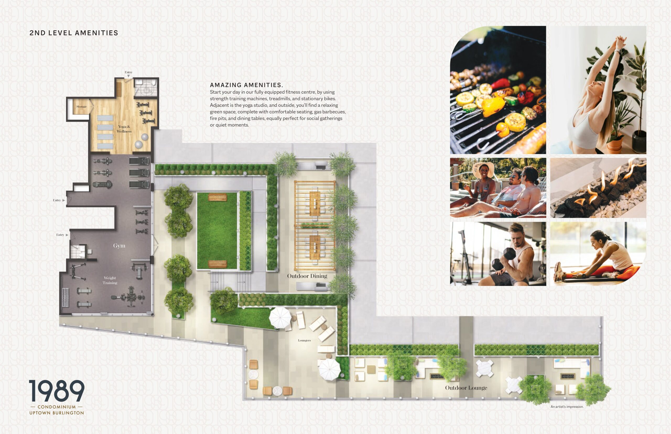 ♦ Luxurious Living: 1989 Condos offers luxury living with well-designed units featuring modern comforts and luxury finishes. Residents can enjoy a high standard of living with amenities such as a modern fitness center and outdoor areas designed for relaxation.